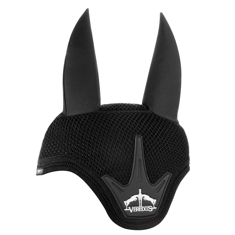 Veredus soundproof fly veil with padded ears, ideal for competitions and training sessions. The Stability Soundless fly veil by Veredus is an elegant and functional accessory designed to improve the horse's comfort and focus. Handcrafted from high-quality cotton, it is highly breathable, lightweight, and easy to maintain. • Reinforced front insert, keeps the fly veil stable even during intense activity and prevents the front edge from moving on the horse’s head. • Noise-reducing ear covers, made of sound-absorbing material to minimize external sounds and distractions during competitions and training. • Protection from flies and insects, offering complete coverage.