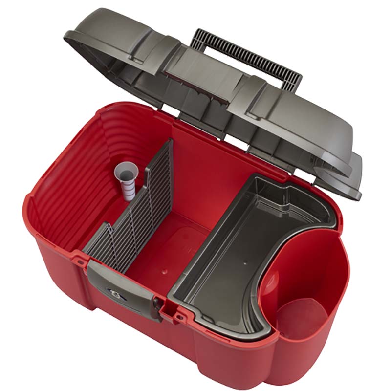• Grooming box for accessories and tool for equitation, with side pocket, made of excellent plastic. Dimensions 52x34x30H.