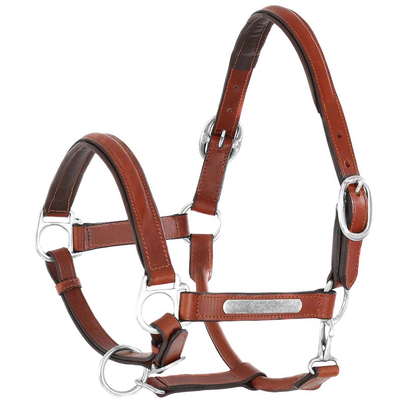 Rawhide halter, fair quality adjustable with spring clip, good endurance.
