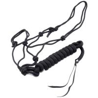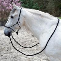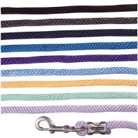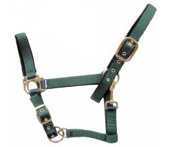 Double nylon Nabuk covered halter, very strong with double settings and sprin clip. Brassed metal bucale.
