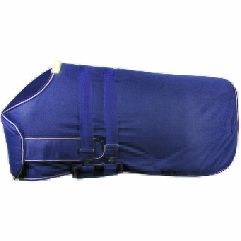 High-necked waterproof rug with openings for stirrup belts, suitable for Trekking, easy to refold. Colour: BLUE.