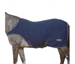 Horse joust rug sheet in soft and hot microfleece. Excellent freedom of movement, remains in place due to cross straps on belly, front classic closing, under tail. 100% Polyester. Color Blue Navy.