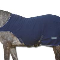Breathable fleece horse rug. Breathable fleece rug, ideal for drying the horse, defending the horse from currents and air strikes. Great absorption and evaporation of sweat. Front metallic closure, padding for wither zone. Provided with a tail strap, easy-care, 100% polyester fleece, washable at 30 degrees in a washing machine and suitable for the tumble dryer.