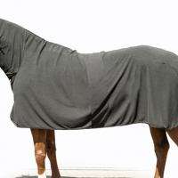 Therapeutic anti-sweat rug for horse, highly insulating, high-quality and extra soft fabric pilling, fast moisture absorption, very breathable, keeps the horse warm, due the reflection of thermo ceramic fibers increases up to 5 degrees the temperature of the horse, while the sweat evaporates. Protecting padding on wither, elastic girth concealed. Metal closure to the chest, tail strap and extra long sides. It ensures the perfect treatment for the horse with the reflection of infrared heat on the body that produces an analgesic and anti-inflammatory effect, improves metabolic function and microcirculation, excellent aid in heating and cooling of the horse in training and competition. Suitable also to maintain a good temperature during transfer and transport. It accelerates the healing process and muscle relaxation. 100% polyester, washable at 30°, suitable for tumble drying. Product protected by patent.