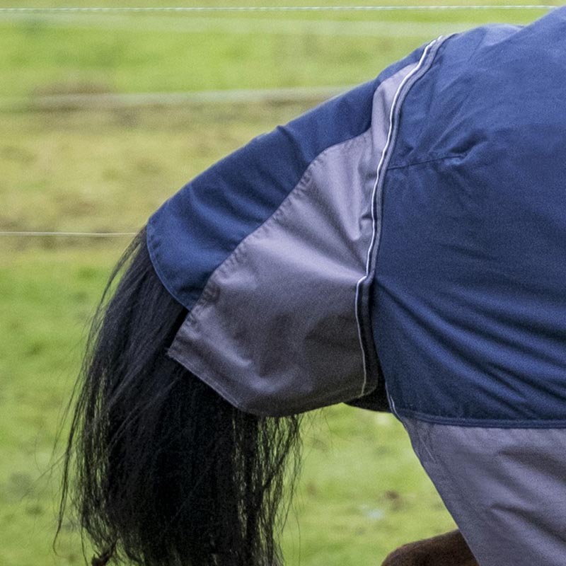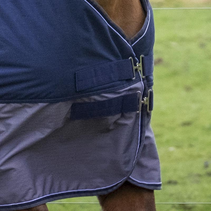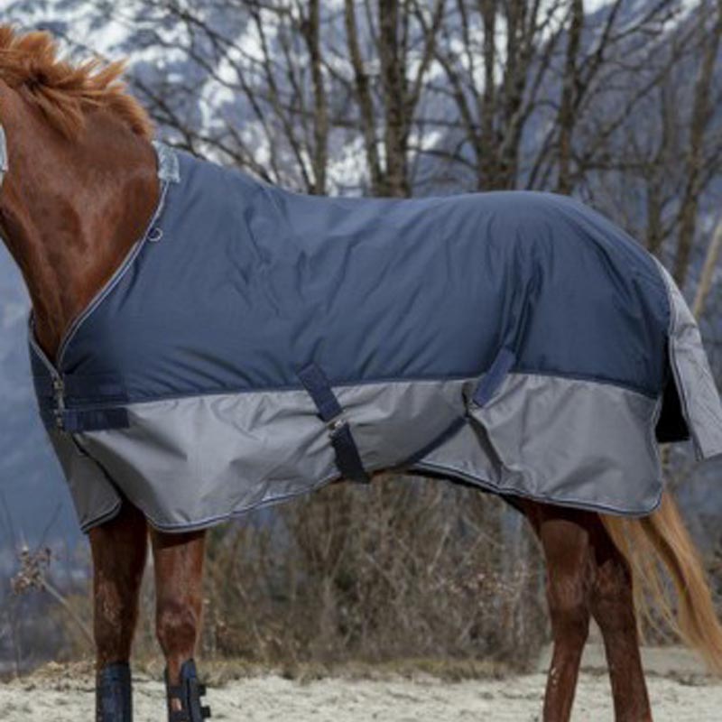 Waterproof turnout rug for horses and ponies padded 150 grams. Breathable and waterproof paddock horse rug, with Ripstop treatment in 600 Denier polyester, lined with anti-scratch and anti-static synthetic fabric. Wide rainproof tail cover, padded edge antichafing on wither with synthetic fur. Double chest closure, adjustable straps for closure on the belly.