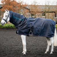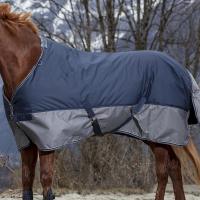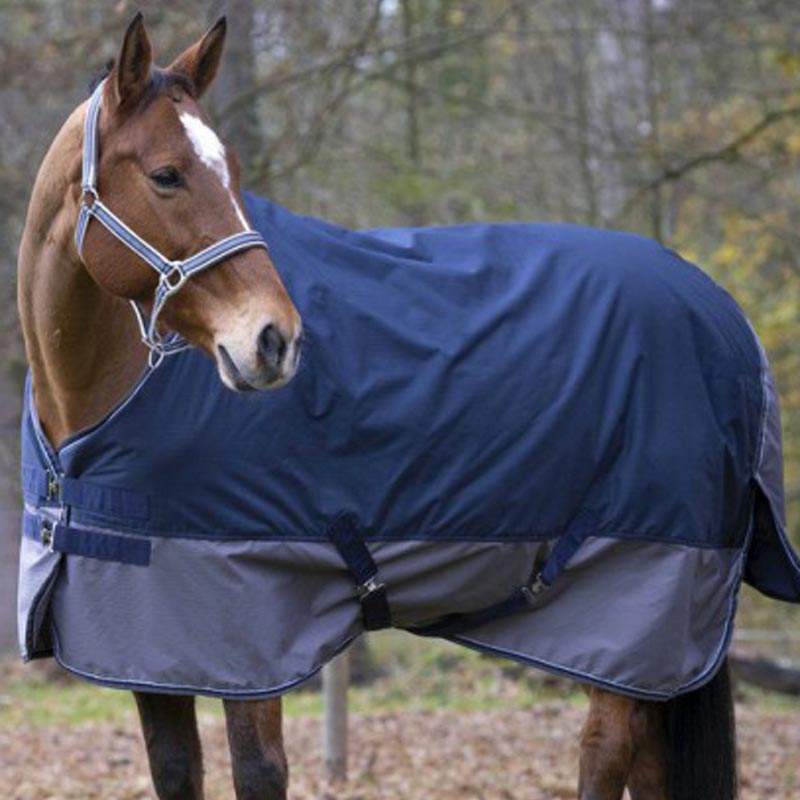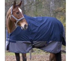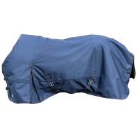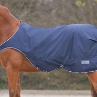 Waterproof turnout rug for horses and ponies without padding. Breathable and waterproof paddock horse rug, with Ripstop treatment in 600 Denier polyester, lined with anti-scratch and anti-static synthetic fabric. Wide rainproof tail cover, padded edge antichafing on wither with synthetic fur. Double chest closure, adjustable straps for closure on the belly.