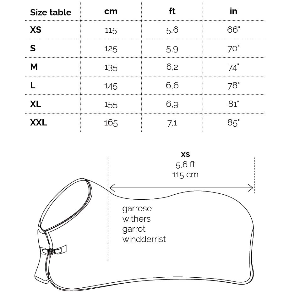 Equiline Anthea stable quilted blanket with 200-gram filling. This winter blanket for horses is made from 1200D tear-resistant polyester fabric. The interior is lined with a hypoallergenic and anti-bacterial cotton-polyester blend. The soft and warm 200g padding allows sweat to breathe, keeping the horse warm even on the coldest days in the stable. Double adjustable front closure and cross surcingles. White Equiline logo printed. The indicated size refers to withers-to-tail measurement. Materials: 100% polyester.
