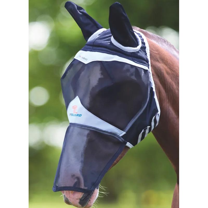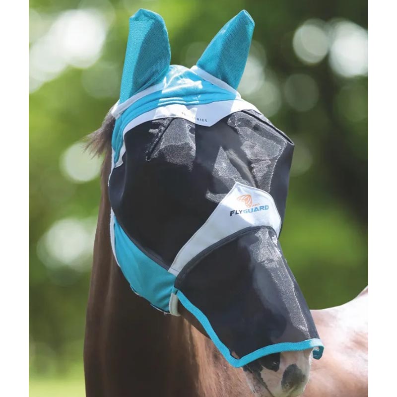 Horse anti-fly mask with ergonomic soft knit mesh. Insect protection mask, with soft fleece-lined seams to prevent abrasions, with fine mesh insert, for greater comfort. Perforated and breathable AirStream fabric for ear protection. The closures are in adjustable velcro for a perfect fit. Front part protects elongated snout to be able to repair also the part of the mouth and nose from the attack of flies, mosquitoes, gnats and gadflies.