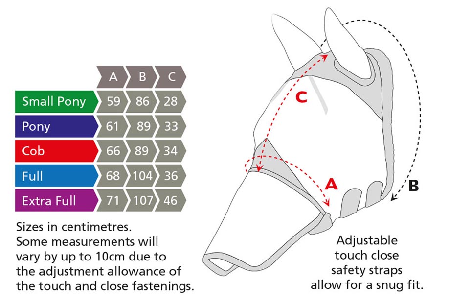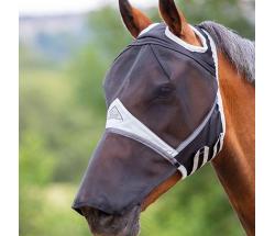 Horse long fly mask in thin mesh with holes for ears. This model is ideal for horses that prefer to have free ears, this flies mask protects the nose zone, the eyes and the eye area of the horse from midges and small annoying insects. Along the seams we find a soft anti-chafing fleece protection to lift the mask from the eyes. Adjustable velcro closures, medium UV block 70%, this model prevents and reduces the risk of sunburn and sun bleaching. Elastic insert at the neck to offer an optimal anatomical fit. Test carried out according to BS EN 13758-I-2002 + AI: 2006.