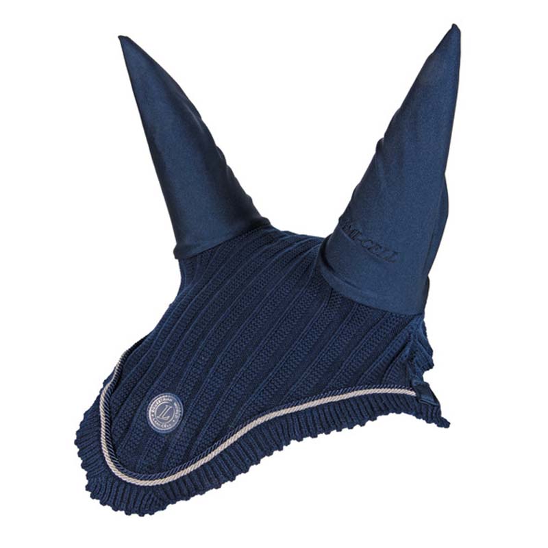 Lami-Cell Luxin model horse bonnet made of 100% cotton with stretchy Lycra ear covers. Elegant and refined, the Luxin bonnet in cotton features a crochet effect design, enhanced with a decorative cord trim. The ear covers, designed to protect against noise and insects, are made from breathable and comfortable Lycra.