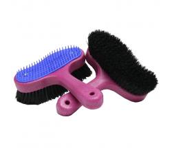 Brush Haas for the horse, dual-use, ideal for foals or horses very sensitive. One side has a comfortable rubber curry comb, the other side has black natural bristles very soft. Comfortable elongated handle. Back size 130x50 mm.