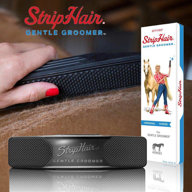 • Gentle Grooming STRIPHAIR Original, special harness for the change of coat, for cleaning the horse, also excellent for the shower. It removes dirt easily, cleans and polishes the horse coat, helps to remove excess hair during moulting, without risking to ruin it. Also useful for the shower, being in technical resin does not present the risk of mold or rust. The groomer measures 22.5 cm by 5 cm, being flexible provides the best solution for grooming the whole body of the horse, washing, bath and even massage. The angled parts of the back are perfect for the snout and the bony areas along the hocks and legs. The Gentle Groomer Original StripHair by Betty's Best with registered patent, used at a 45-degree angle, gently removes the hair, with a polishing effect. Its diamond structure effectively removes mud and sweat (also dried), and also removes shampoo and other detergents during the washing of the horse. The special blend makes the rubber durable and long-lasting, olive and orange oils increase the durability, performance and benefits of this special curries. Its non-porous structure and antimicrobial agents maintain a long-lasting antibacterial efficacy. Due to its flexibility and resistance it is comfortable for the horse and effective for the rider, offering a great time saving, convenient and multi-functional, a single all-in-one tool for cleaning, grooming, seasonal change of coat horse's fur, shampoo, smooth, shine and massage. Delicate and effective, to be used with ease and without any danger on horses and dogs, in every part of the body, perfect and safe for every need.