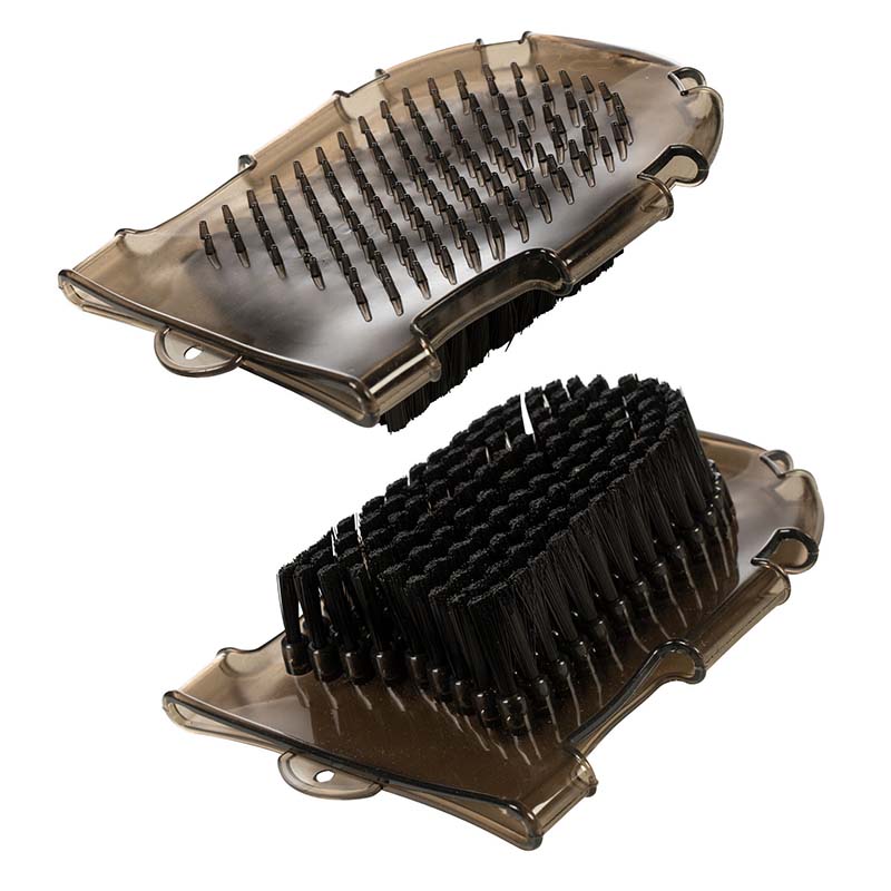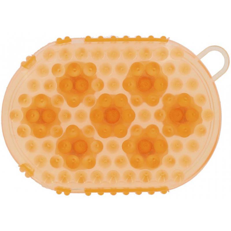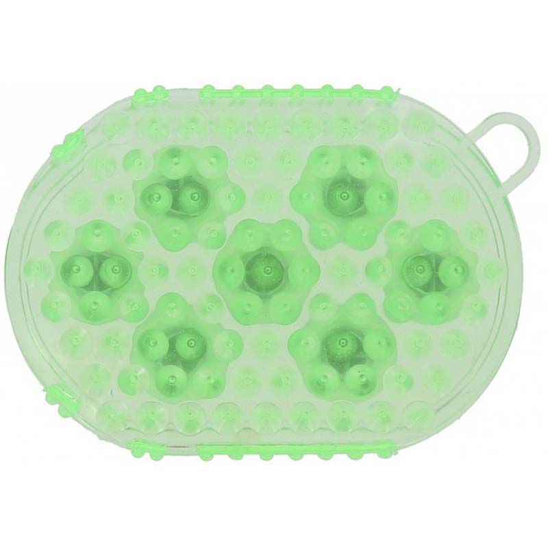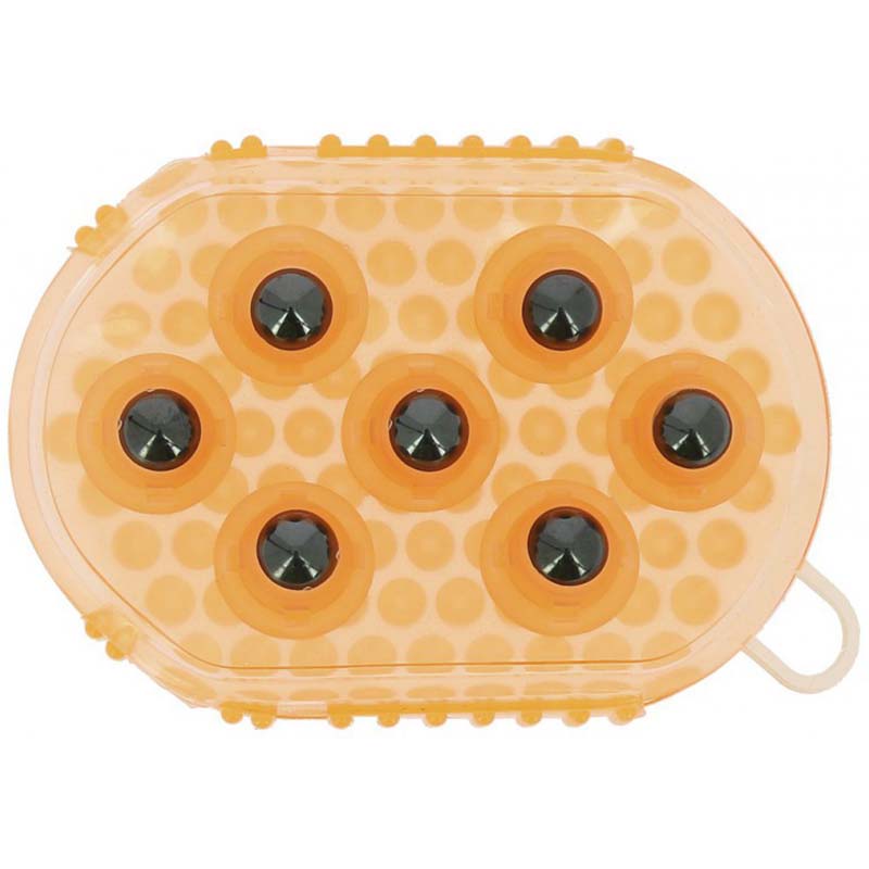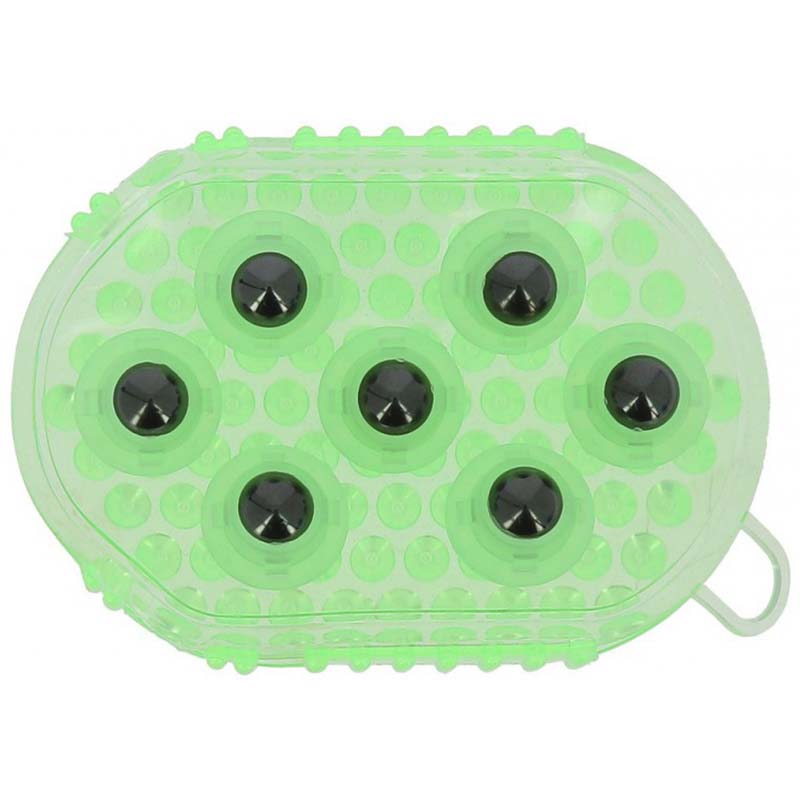 Double curry comb with points and steel balls for massage. Comfortable curry glove gel PVC, with dual function. One side has a classic curries and soft for easy removal of dead hair and dirt. The other side has 7 steel balls that massage the muscle of the horse before work, and relax after training.