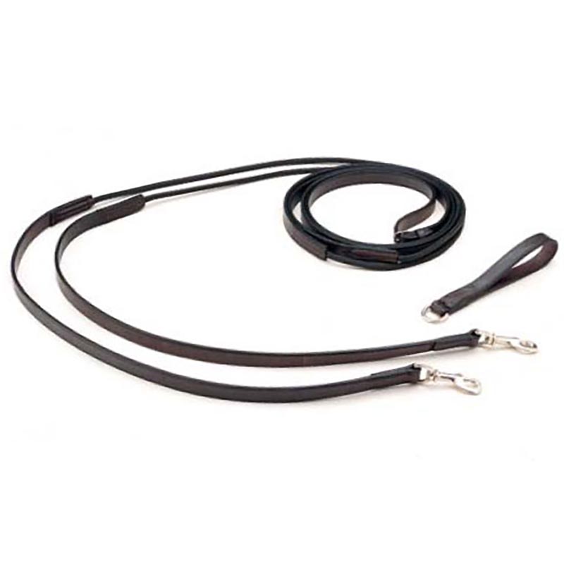 Draw reins Pariani, in leather with rope. Available with nickel plated fittings.