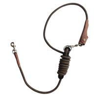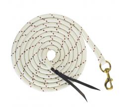 Horseman nautical rope lead with popper in Latigo, 425 cm. Lead 4.25 meters for tame ethologic and natural horsemanship. With brass snap hook. Colour white striped, such as photos.