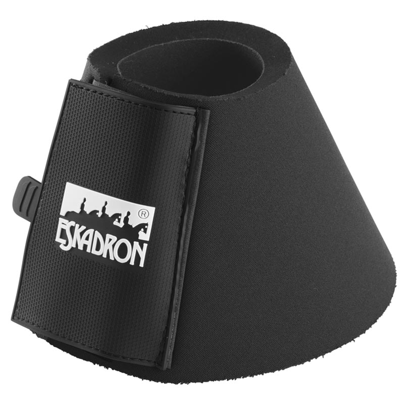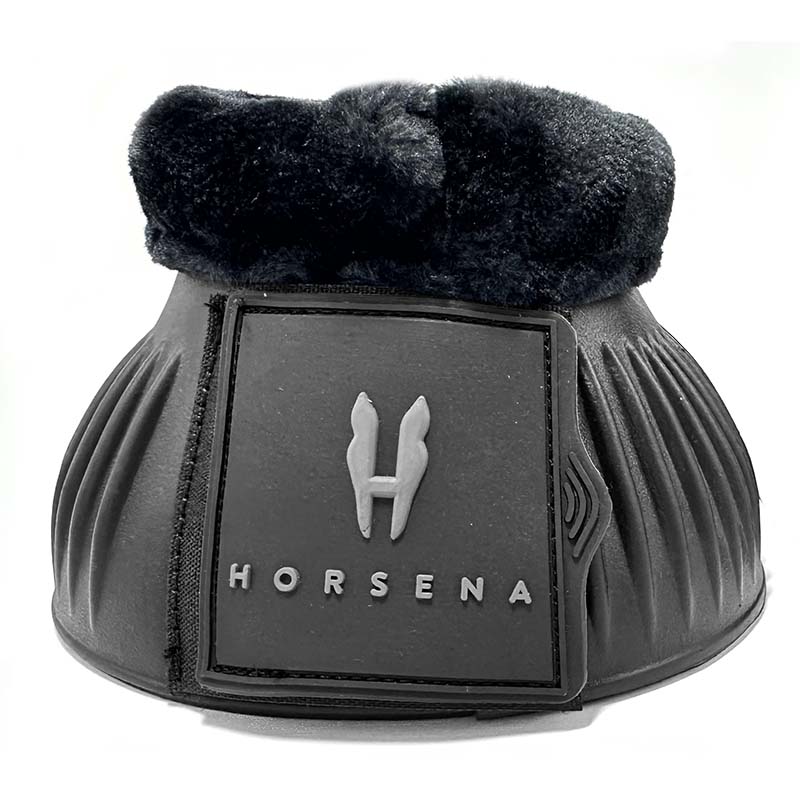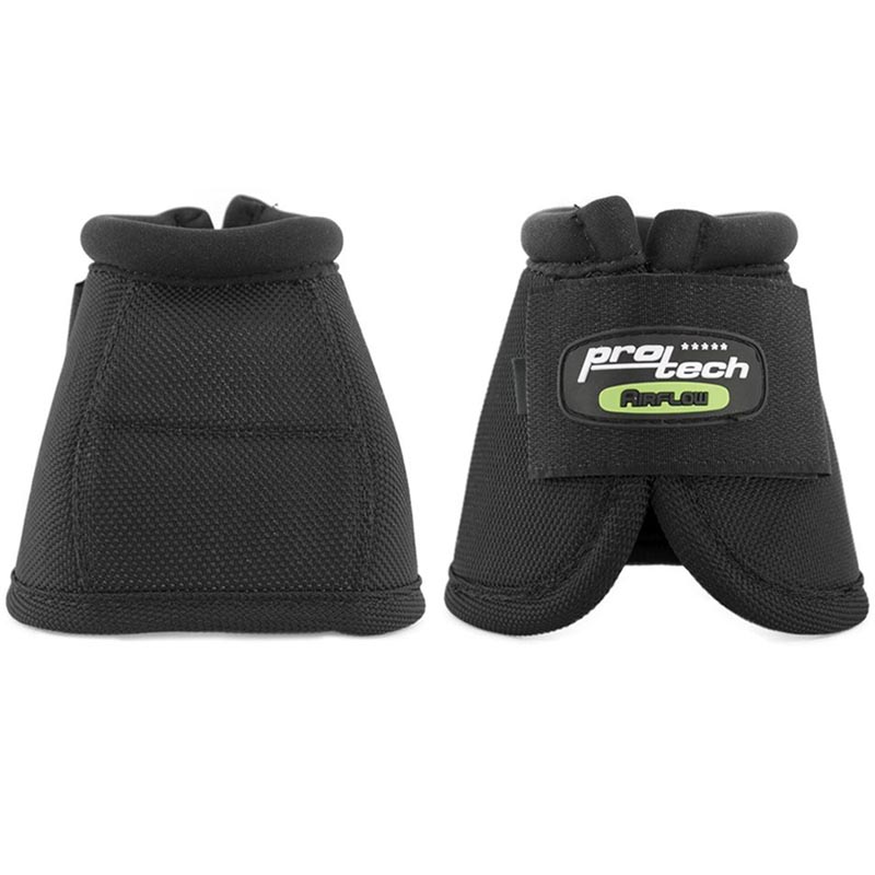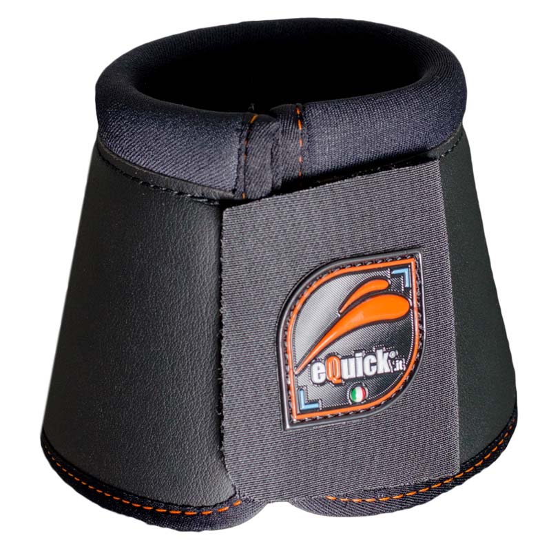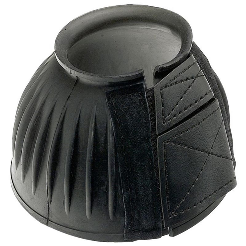 A pair of rubber striped tendon boots with Velcro closure and thus with adjustment, black. Convenient and easy to put on.