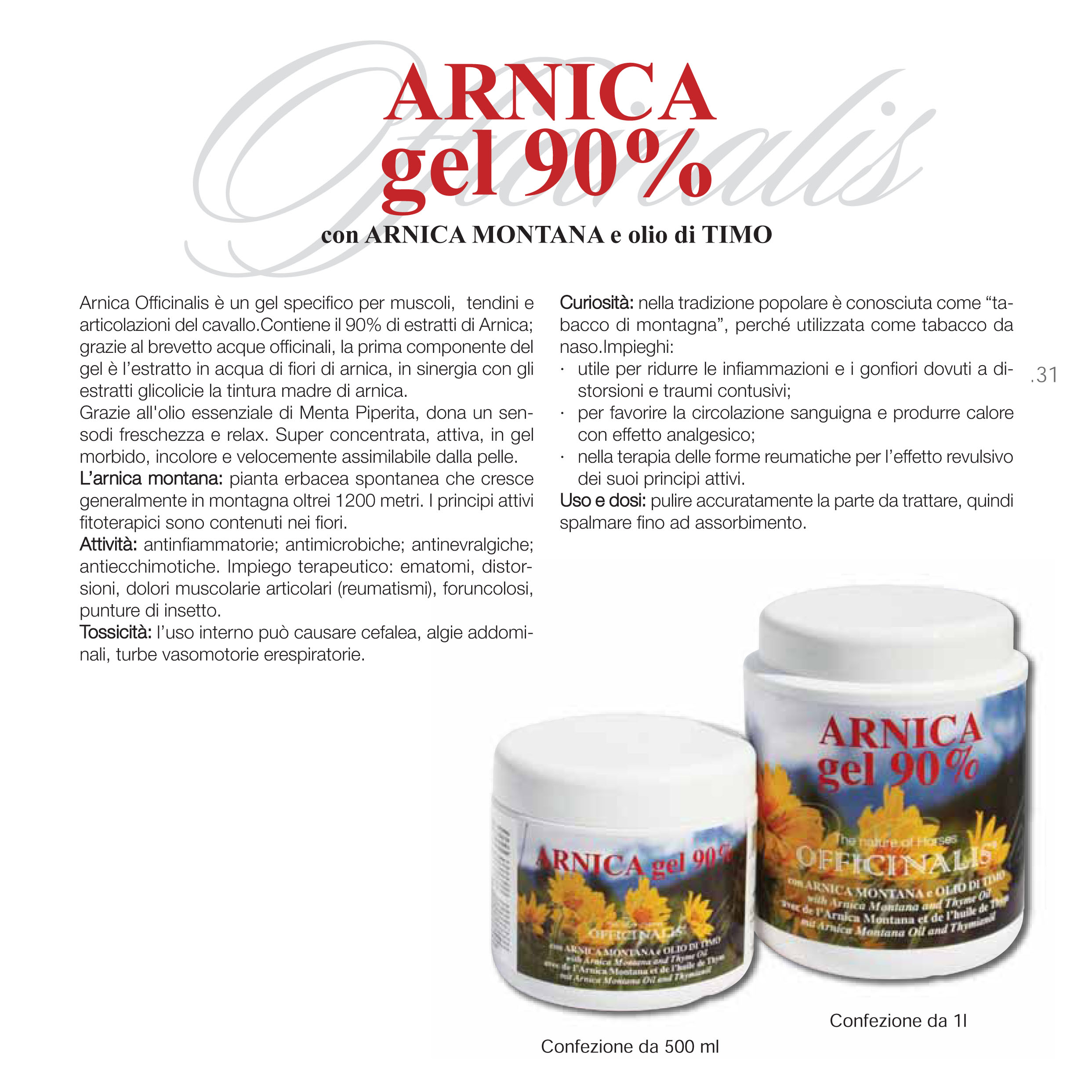 Officinalis Arnica Gel 90% for muscles and tendons of your horse. With alpine arnica flower, glycolic extracts and mother tincture. Peppermint gives relief and freshness.