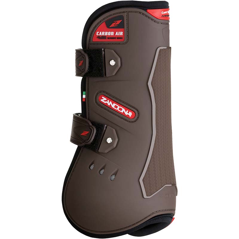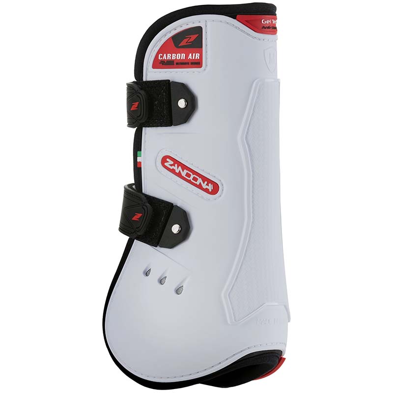 Tendon boots Zandonà model Carbon Air Velcro. Externally made of TPU, with differentiated thickness, support in perforated neoprene and equipped with ventilation outlets on the fetlock. Gel-Tech membrane to absorb shock and cushion for comfort. Shell with Carbon fiber elements, for thermally insulate the joints from the heat generated by friction, and to increase the mechanical resistance to impacts. Closing with Velcro straps, quick release system, can be replaced. Certificate Ricotest. Product completely realized in Italy. Price is intended for the pair.