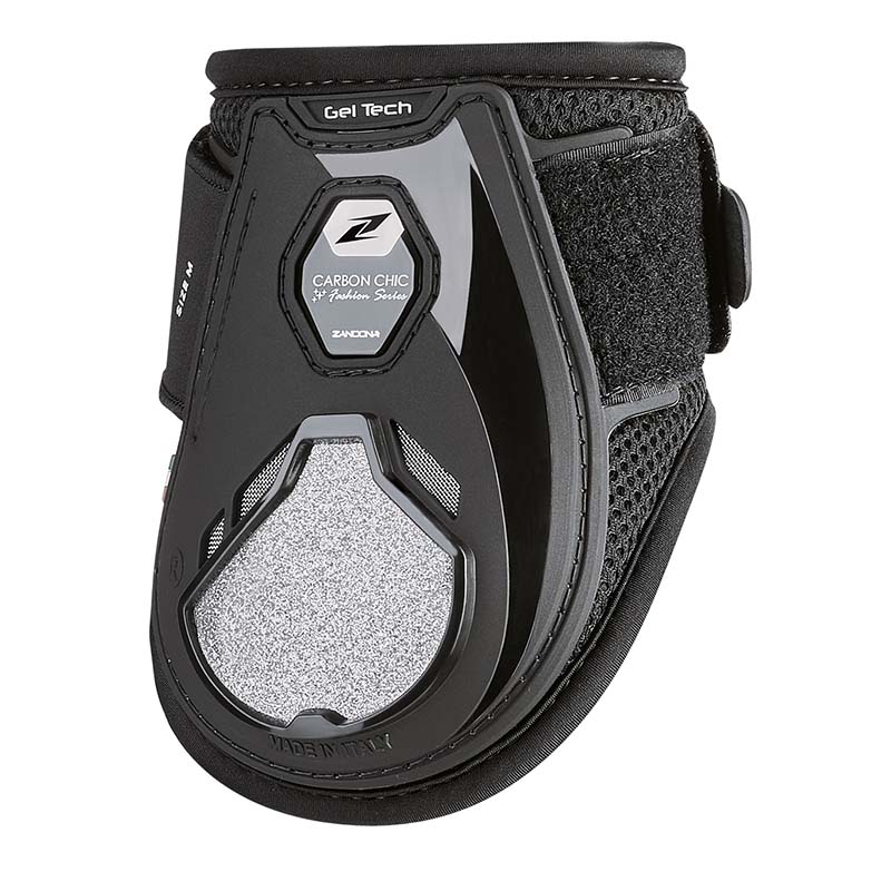 Fetlock boots Zandonà model Carbon Air. Externally made of TPU, with differentiated thickness, support in perforated neoprene and equipped with ventilation outlets on the fetlock. Gel-Tech membrane to absorb shock and cushion for comfort. Shell with Carbon fiber elements, for thermally insulate the joints from the heat generated by friction, and to increase the mechanical resistance to impacts. Closing elastic straps with quick-release tip, suitable for a secure closure. Certificate Ricotest. Product completely realized in Italy. Price is intended for the pair.