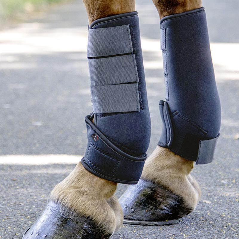Horse protections for dressage, neoprene, with velcro closures. Anatomical shape, composed of breathable material. Price valid for the pair.