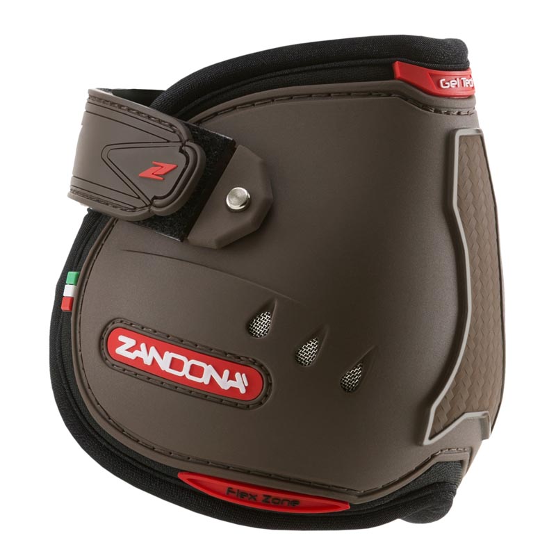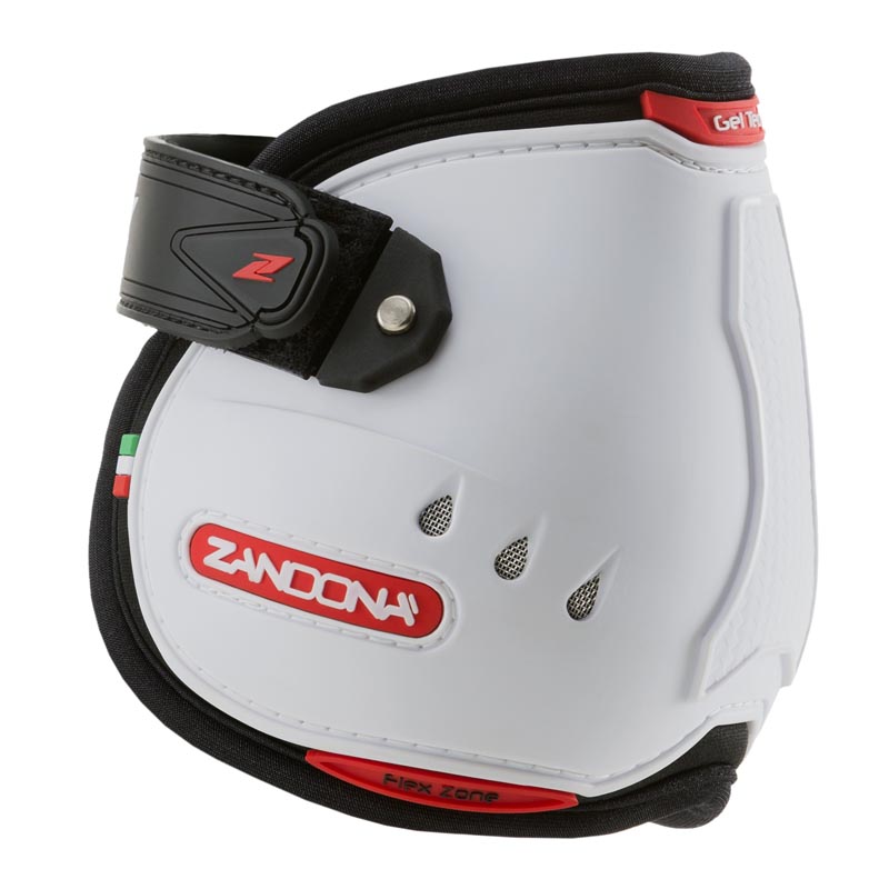 Fetlock Zandonà Carbon Air Equi-Lifter with Velcro closure. The 100% made in Italy CARBON AIR EQUI-LIFTER VELCRO Fetlock have been studied to defend jumping horses from collisions and bruises at hindlimb’s fetlock and part of the cannon, while offering tendon support. They are composed by external TPU structure with differentiated thickness, transpiring thanks to the perforated Neoprene and ventilated by 6 Air-Vents. Gel-Tech is included between the external TPU structure and the Neoprene support, where necessary, working as shock absorber and comfortable padding. Carbon Fibre elements are present under the shell to thermally insulate the joints from the heat generated by external friction, while increasing the mechanical resistance to impacts. On the external side, closed to the pastern, have been created a Flex-Zone, necessary to allow maximum freedom of movement to the limb. A secure closure is guaranteed by a Velcro strap, which is removable by quick-release system to be replaced when exhausted. Its dimension and absolute ergonomic shape have been developed copying accurately the limb structure, guaranteeing a perfect positioning while avoiding any kind of stress.