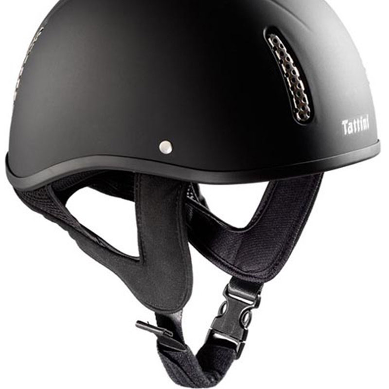 Cap Tattini without visor with rubberized coating mat. Helmet for riding, with metal grilles for ventilation, front and rear. With Coolmax padding, removable and washable, and padding for the neck. Chin strap with quick release buckle. Respect CE VG1 approval. Comes with fabric protective case.