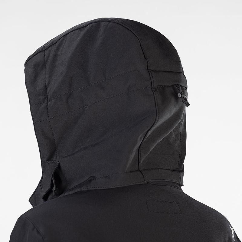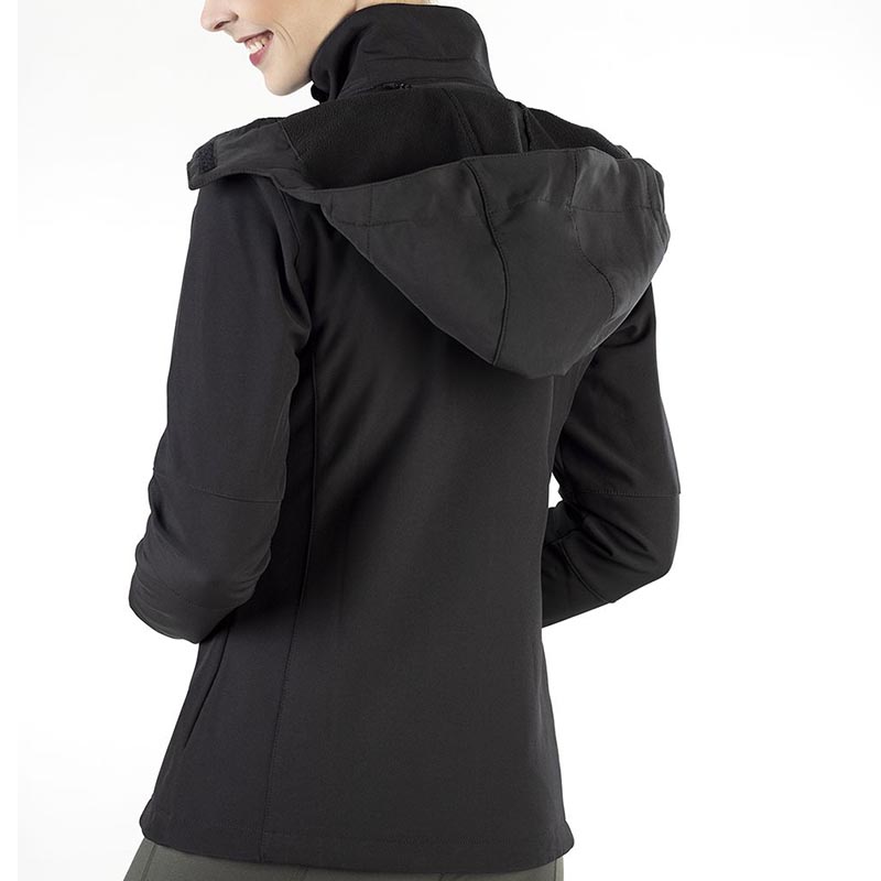 Women's Sport Jacket softshell riding windproof and water repellent. Resistant model and strongly water repellent (3.000mm), with taped seams, hooded, slanting pockets with zippers, high collar. Washable at 30°, suitable for the dryer (cold air), inside 100% polyester fabric. Membrane 100% polyurethane, outer fabric: 94% polyester, 6% elastane.