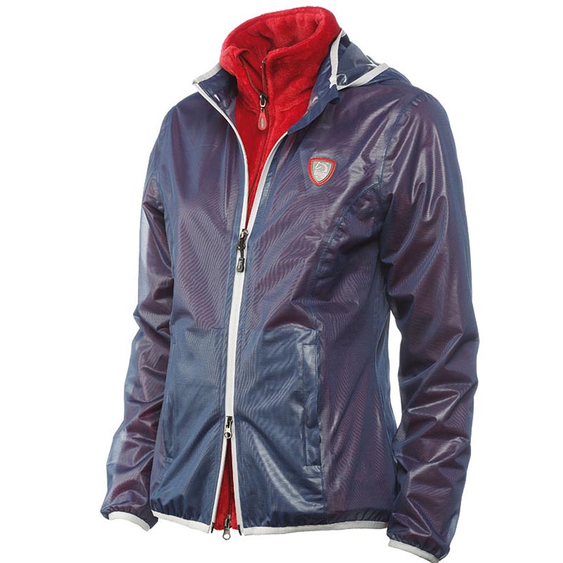 • Waterproof rain jacket Tattini unisex for competition. Rain jacket, fitted waist line, polyester tricot extra light, waterproof and breathable, with thermo taped seams and waterproof two-way zip. Removable hood, zipped pockets concealed, contrasting elastic profiles. Excellent as a guard over competition jacket.