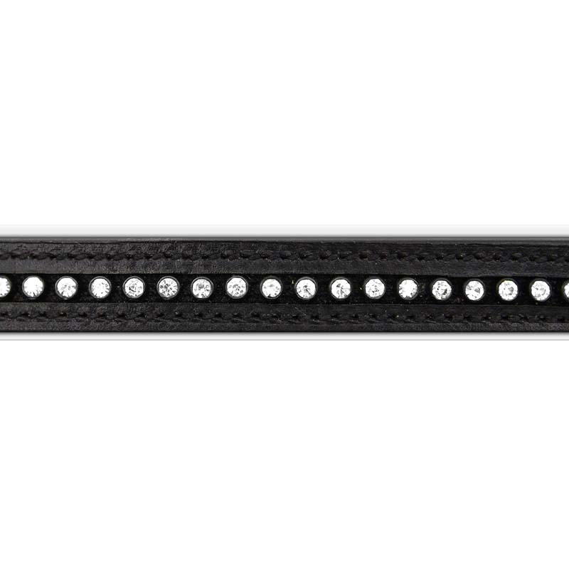 • English bridle Star Diamond with rhinestone, various colors. Bridle complete in leather, with front straight and colored rhinestones, coated noseband and bezel, nickel buckles, reins 19mm canvas.