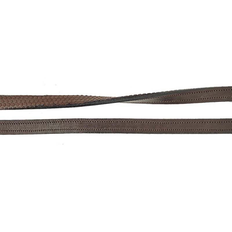 Rubber grip underside reins Pariani in leather. Italian leather coated on one side with soft rubber grip, size 5/8”, with brass buckle.