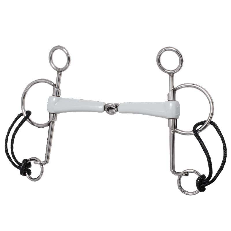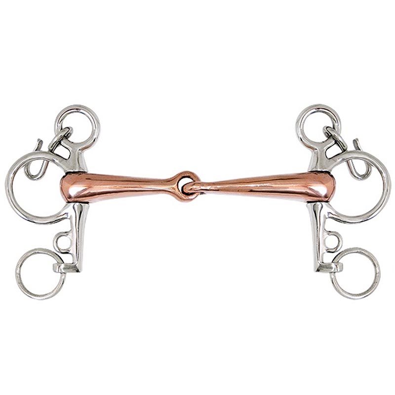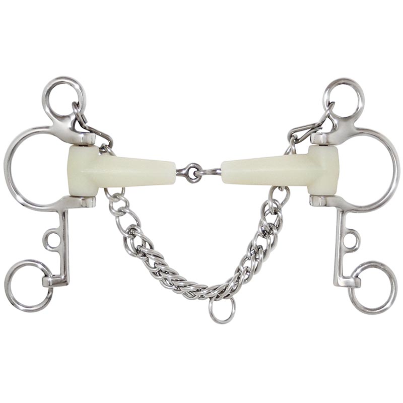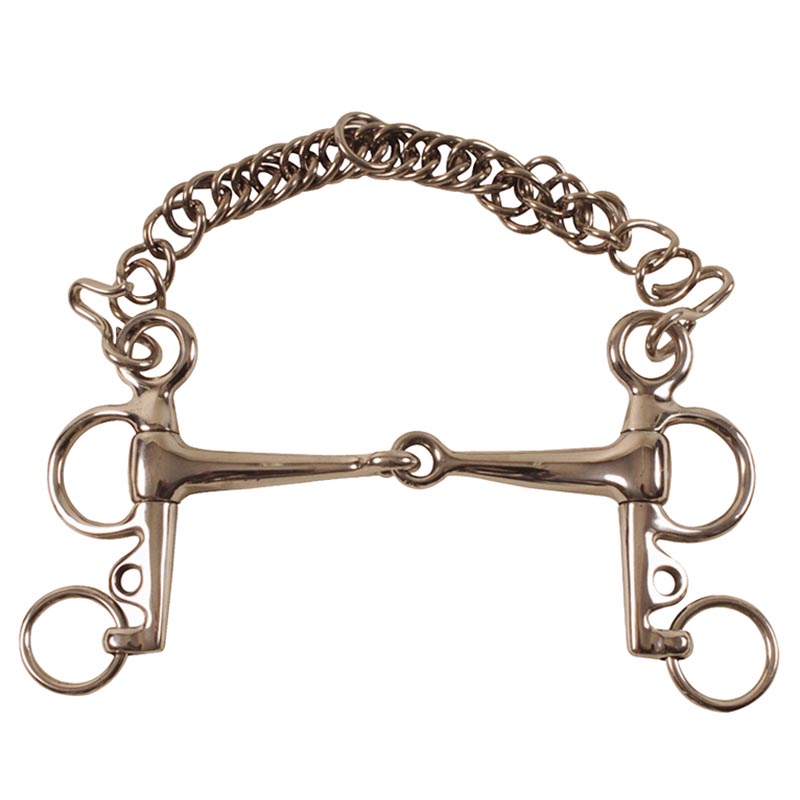 Full stainless steel gag bit with port mouthpiece and curb chain.