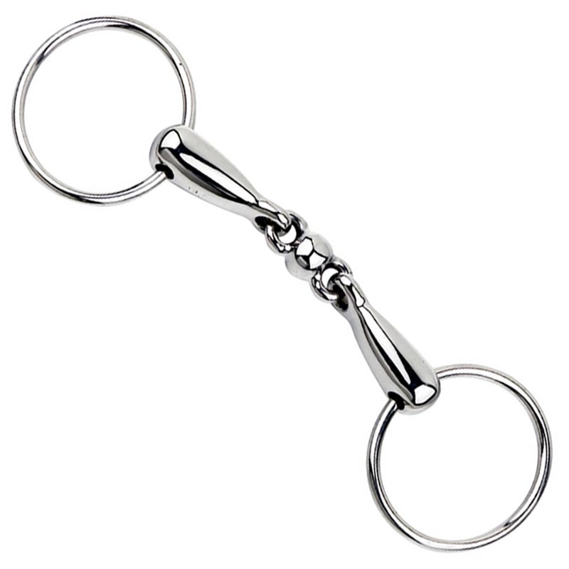 Stainless steel snaffle bit with rings, unjointed and covered with hard rubber, thickness 21 mm, with 65 mm rings.