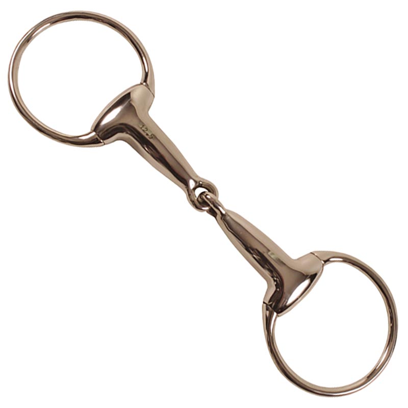 Snaffle egg butt bit, jointed, hollow stainless steel. Thickness 23 mm.