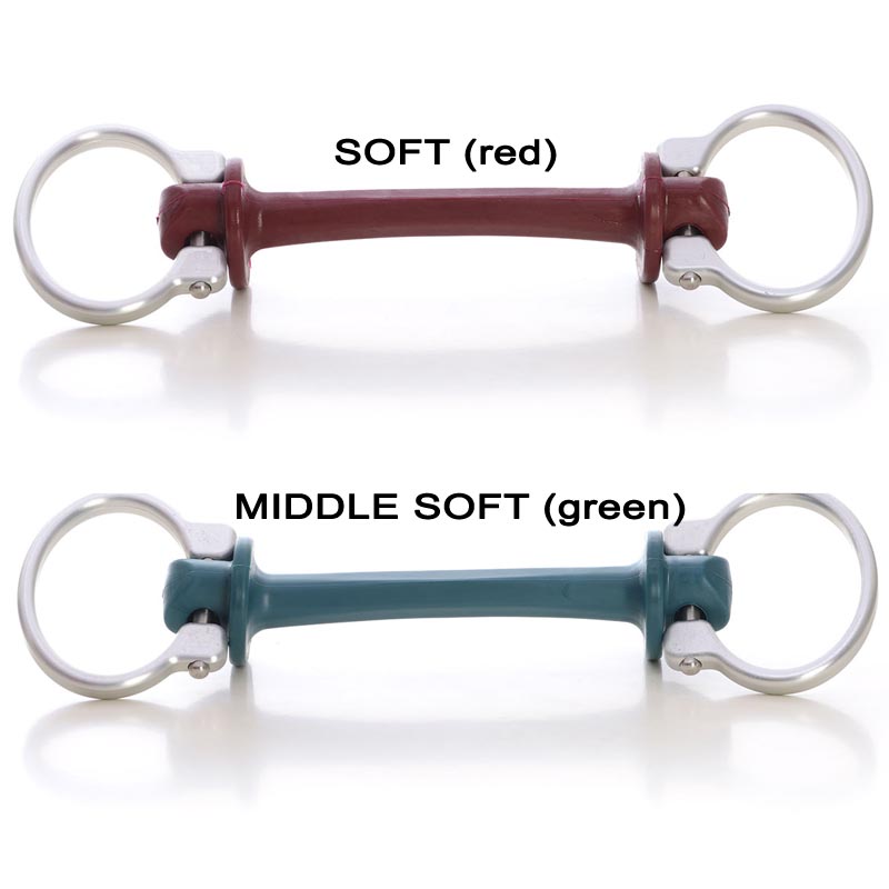 Each bite can be chosen in two versions for the hardness: Medium color GREEN (80 Shore). Soft color RED (65 Shore). The rings or side cheeks can be chosen in 4 different colors: Black, Bronze, Champagne and Silver.
