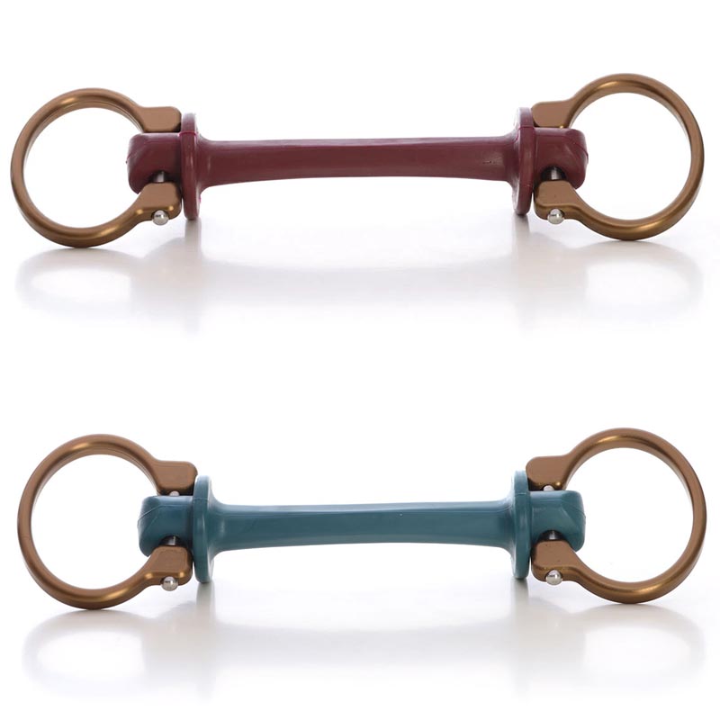 Limo Bits by MaKeBe big egg butt bit. Olive butt bit with large rings. The MaKeBe bits and snaffle have a central hexagonal-shaped body and wide side washers that prevent pinching of the bite on the labial commissures and excessive air ingestion. Its side supports are unique on the market, these bites are the first in the world for the use of CNC aluminum and Swedish steel, designed and manufactured in Italy by MaKeBe. The central body is made of an extremely resistant non-toxic thermoplastic elastomer, also suitable for the most sensitive horses, with central thickness of 15 mm.