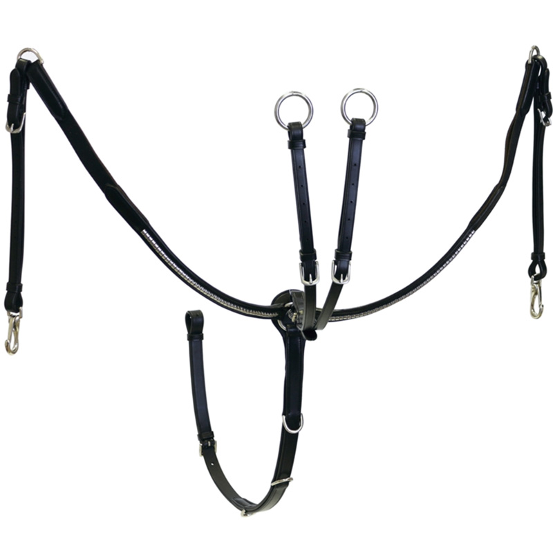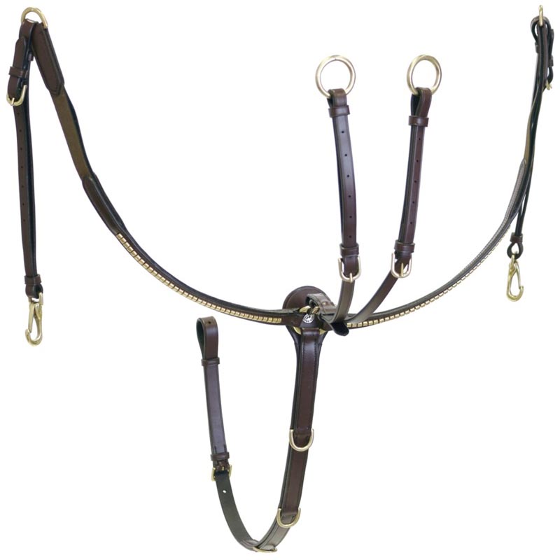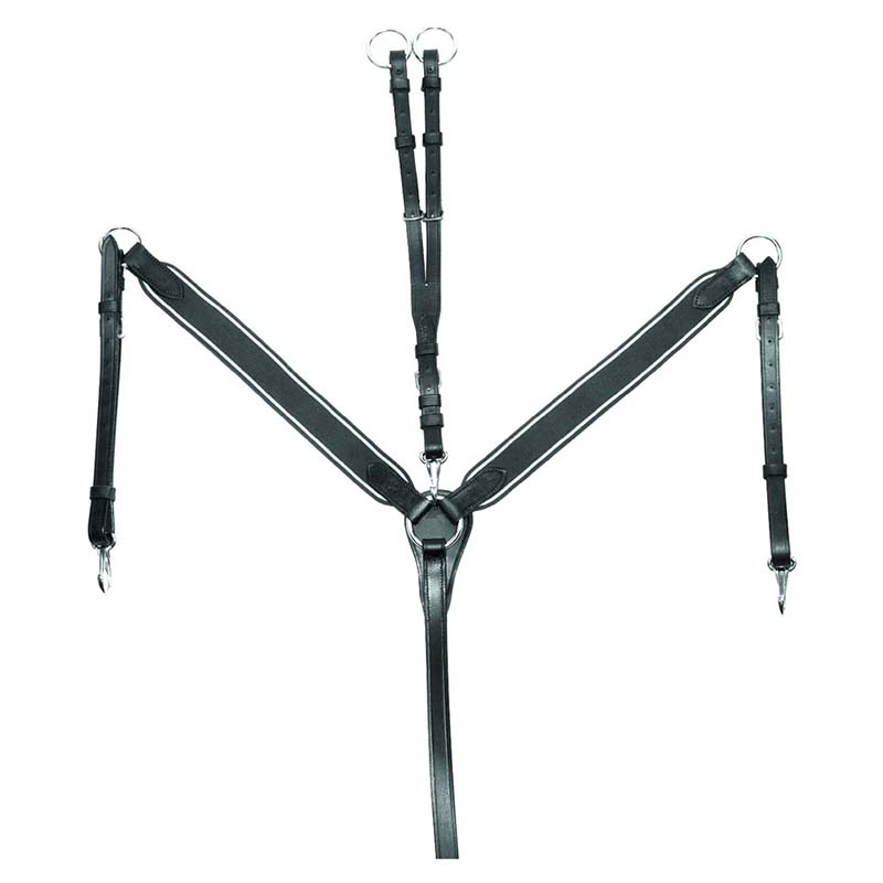 Elastic english leather breastplate, great quality with brass buckles. Completely adjustable. The color refers to the leather parts, the elastic parts can vary according to manufacturer availability.