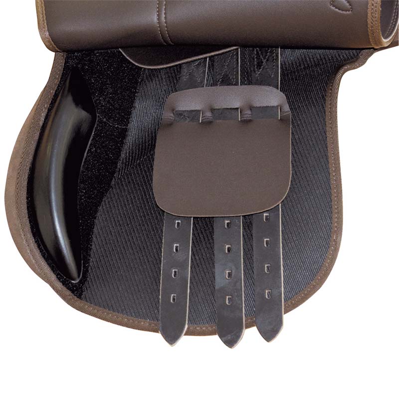English saddle Pro-Light Firenze, All Purpose model, in faux suede. Model Pro Light synthetic leather, suede effect, suitable for different disciplines. Adjustable Velcro Knee rolls. Saddle with interchangeable gullet, comes with standard opening 30" (black gullet), other variants are sold separately.