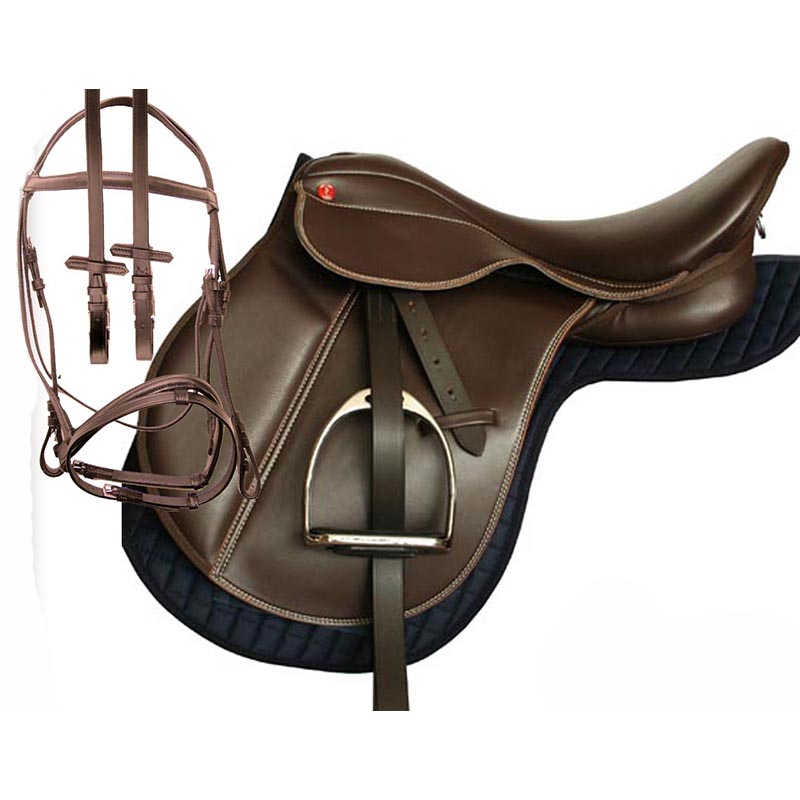 Daslo English synthetic leather saddle supplied with interchangeable gullet in order to adapt the saddle to the withers of any horse. Suede nonslip seat and front pads covered, flexible synthetic tree. Extremely light and easy to care. Buffalo leather, Knee rolls with velcro and wool paddded cushions. With interchangeable gullet: 15” – 16” (30°medium gullet) 17” – 18” (28°medium-narrow gullet)