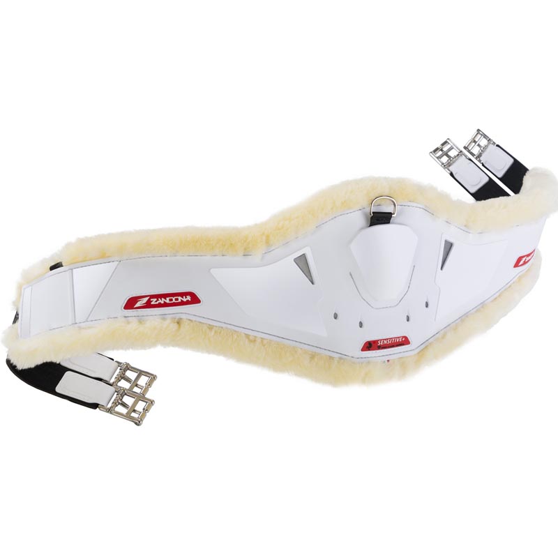 Carbon Air Sensitive+ Candy Girth is a 100% made in Italy and candy innovative girth designed to defend the horse's belly area in the discipline of show jumping. The removable inside cover in real lamb of Merinos Wool offers maximum comfort and, thanks to its anti-allergic properties and regulate temperature, is also ideal for sensitive scalps. They are composed by external TPU structure with differentiated thickness and its elements of Carbon Fiber make it lighter and more durable at the same time. The breathability is ensured by 6 air vents/intakes. The connection via locking system buckle is adjustable thanks to the particular structure of the latter allowing you to adjust the closing of girth easily even sitting on his horse. The front hook is protected by a central shell and ensures good fastening of the girth. It is also equipped with a (removable) ring to which fasten carabiners. The size and absolutely ergonomic shape have been developed perfectly following the body of the horse structure.