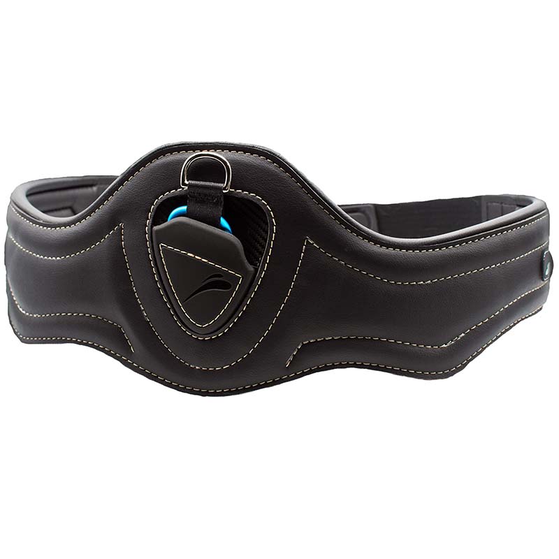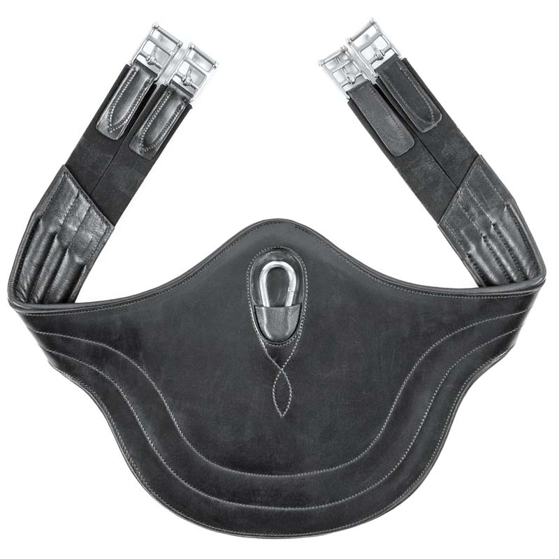 English girth made of great EQUESTRO shake leather, with elastics and stainless steel buckles.