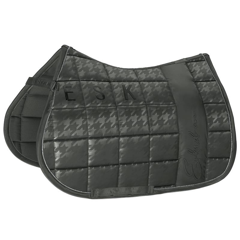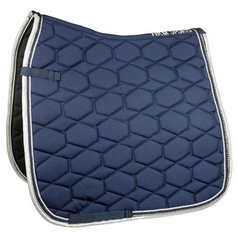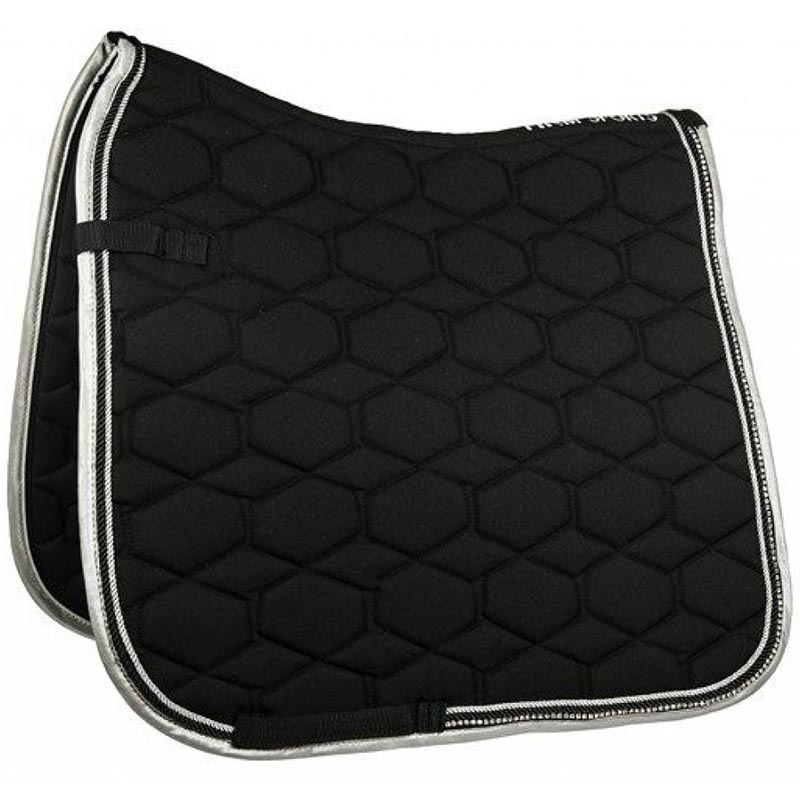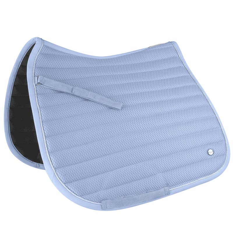 Crystal dressage saddle pad. Very soft and elegant quilted saddle pad, with contrasted braid cord and rhinestone. 100% polyester, 15 mm foam padding. Machine washable at 30 degrees.