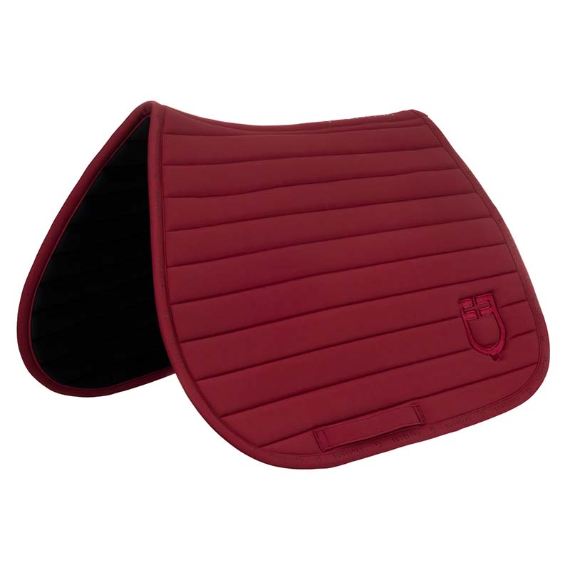 Equestro jumping saddle pad with crystal logo, made from breathable technical fabric with honeycomb interior. The Equestro jumping saddle pad with crystals is the ideal accessory for showjumping and English riding competitions that demand style and a flawless look. Crafted from breathable technical fabric, with diamond quilting and a honeycomb cotton interior, it keeps the horse cool and dry even during intense activity. This saddle pad features a shock-absorbing function and an anatomical design that conforms to the horse’s back, minimizing impacts and pressure. A functional and elegant saddle pad, embellished with sparkling details: on the left side, the Equestro logo adorned with crystals, and on the strap, the brand name crafted in crystals. Quick-drying technical fabric with a cotton interior.