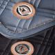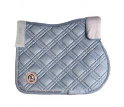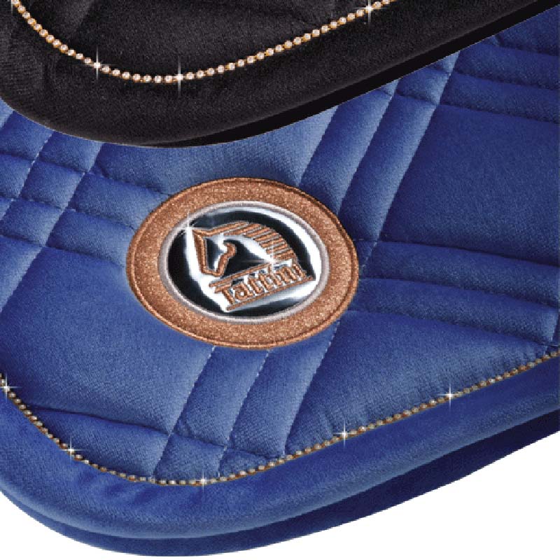 Tattini Prado Limited Edition English saddle pad, made of technical microfiber fabric with triple-diamond quilting and synthetic sheepskin protection for the back and withers. 240g Polyfill padding. The Prado saddle pad ensures maximum comfort for the horse and reduces saddle friction, thanks to its double synthetic sheepskin padding for the back and withers. It is crafted in soft, velvety microfiber with an elegant triple-diamond quilted pattern. The interior features 8mm foam padding and 240g polyfill, lined with a breathable mesh to keep the horse’s back dry. The rear border is adorned with a row of rhinestones and a Tattini logo badge with glittering rose gold details.
