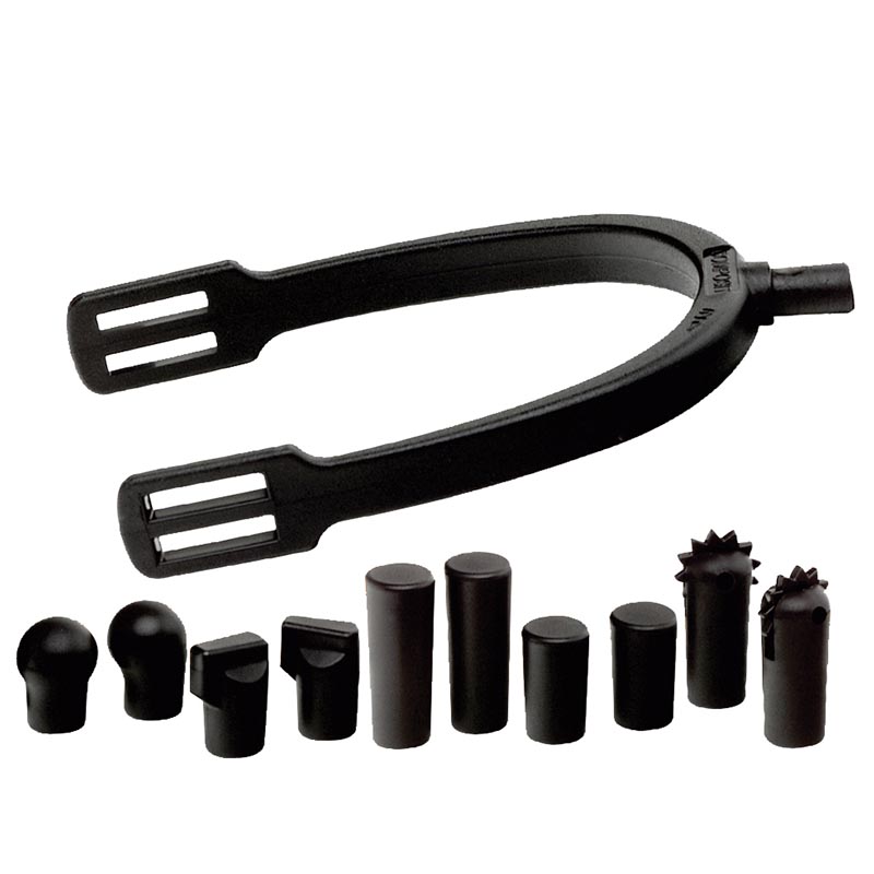 English spurs couple, synthetic colored plastic, with ball ends, neck length 24 mm.