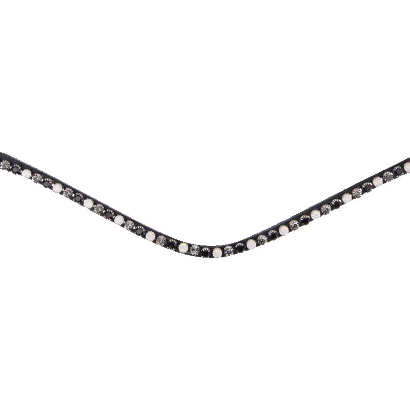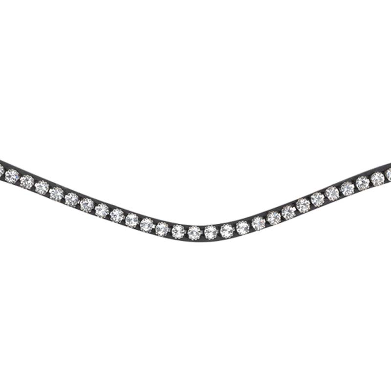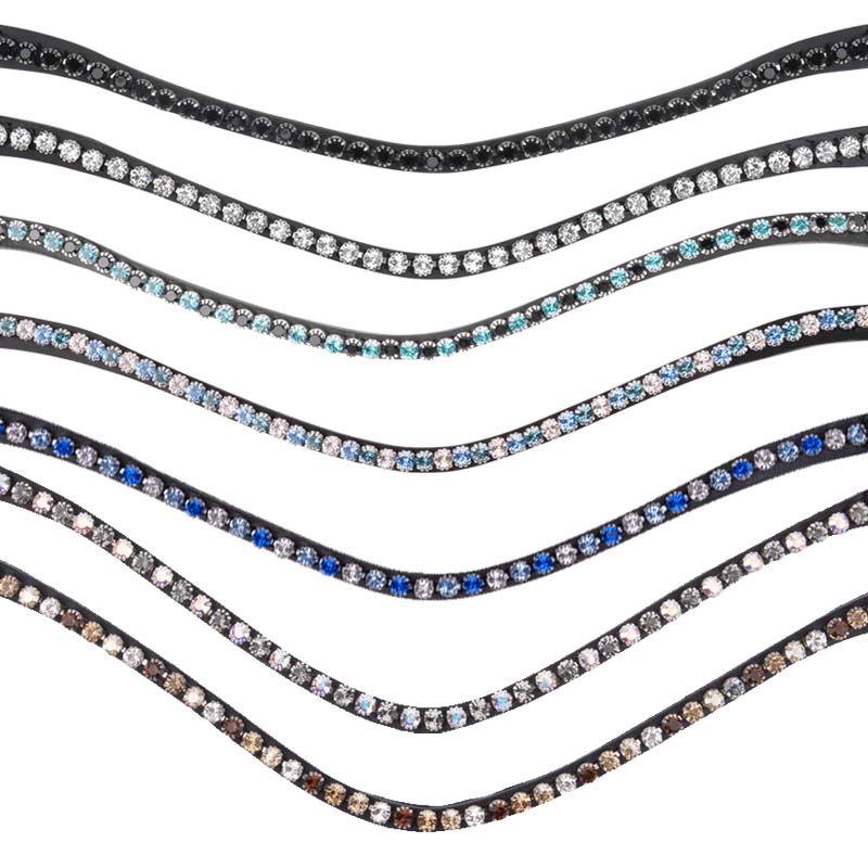 Waldhausen X-Line Glam browband, made of high-quality leather and adorned with alternating crystals. Ideal for competitions and English riding events. The Waldhausen X-Line Glam browband is an elegant accessory designed to add a touch of style and brilliance to your horse’s bridle, perfect for competitions, official events, and English riding disciplines. Crafted from premium leather, it ensures durability and an anatomical fit for optimal comfort, preventing pressure points on the horse’s forehead. The alternating crystal decoration enhances elegance and sparkle without being excessive, making it the perfect choice for riders who want to stand out with class in the show ring or during training. Compatible with bridles with interchangeable browband.