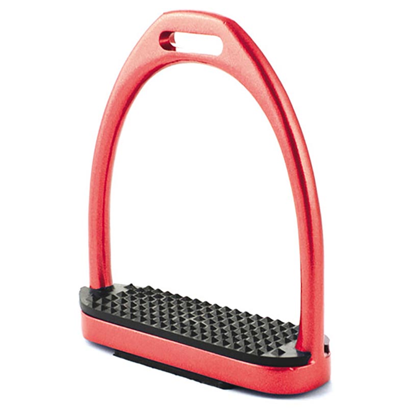 Colored aluminum stirrups with rubber footplate. Available in one size for adult, platform 12 cm. Sell on pair.