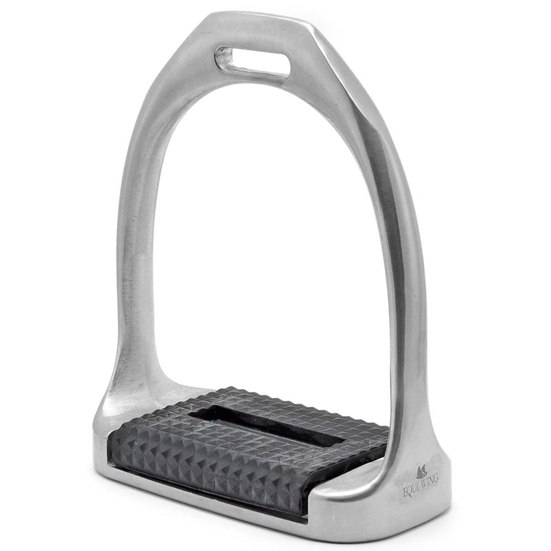 Pair of aluminum Equiwing stirrups, 120 mm base, depth 70 mm. Supplied with nonslip rubber pads. Weight 405 gr. each.