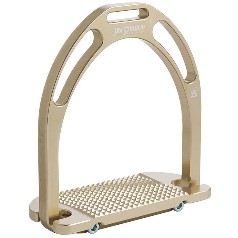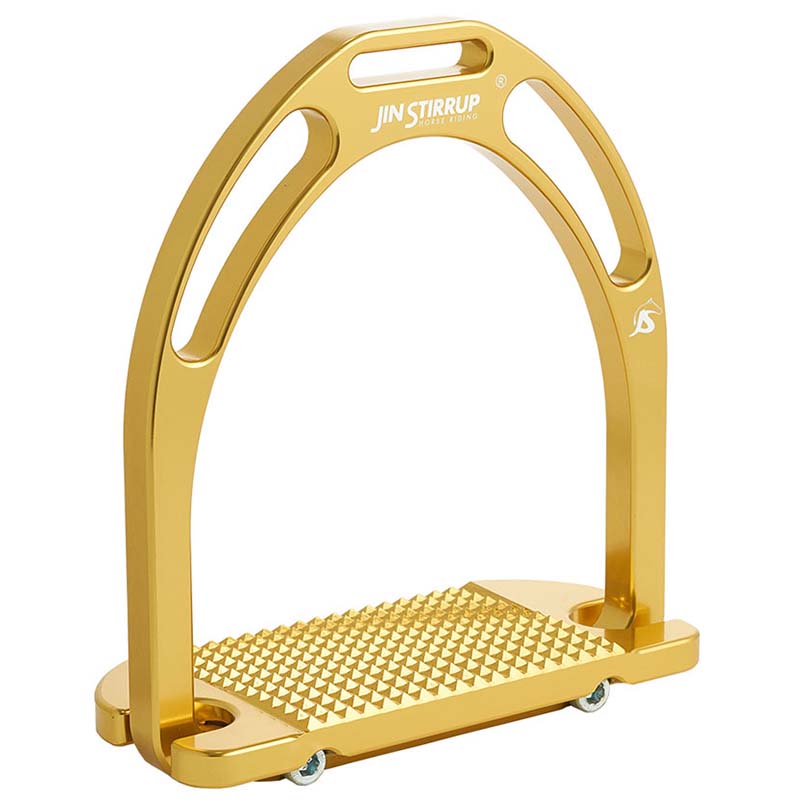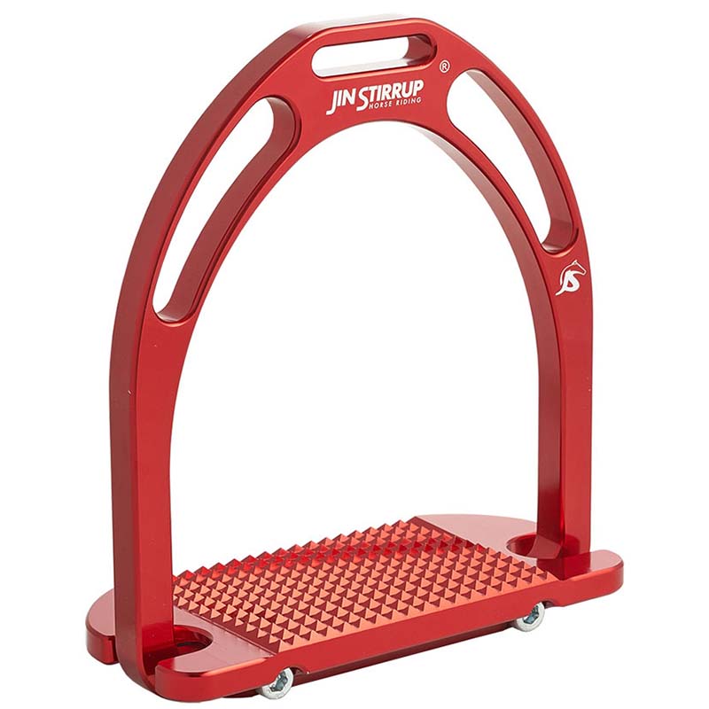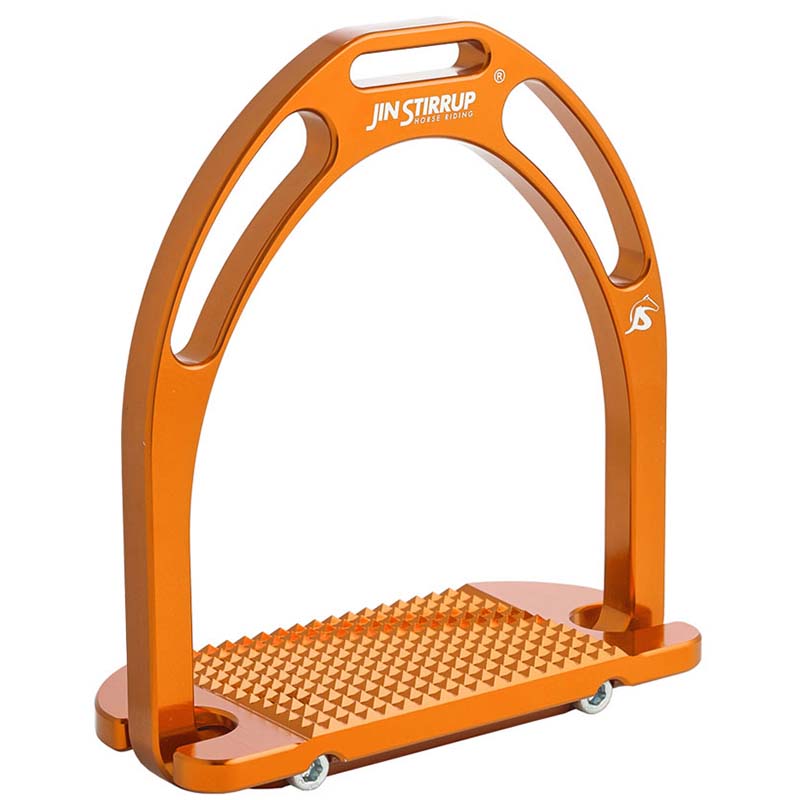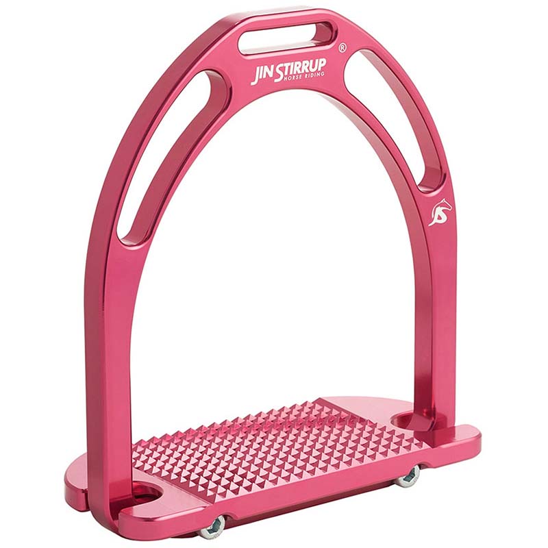 Jin Stirrup stirrups stand out for the revolutionary design and the use of a material to the vanguard like the aluminum. The aluminium allows us to produce a stirrup with a maximum weight of 300 grams, one of the lowest in the category, without compromising you security in any way. The Jin Stirrup stirrup offers a "grip" without comparisons, thanks to the special “diamond” manufacturing of the bench support area and to generous surface. Both the large form and the particular grip of Jin Stirrup give an higher sense of stability which creates an “all one” with your foot. Jin Stirrup stirrups are obtained by certified sky-high quality aluminium, worked with sophisticated CNC machinery. Colourings obtained with the anodizing process give the product an effective protection from the corrosion and, for last, offer the possibility of choosing between a colour full range. MADE IN ITALY