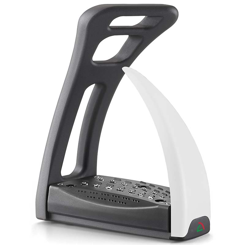 Safe Riding S1 stirrups, designed to ensure maximum safety to the rider by combining top performance, exclusive technologies, as evidenced by three international patents certificates. The riding Safety stirrup First have the outer arm moves tilted 90 degrees to the outside, and can rotate by 180° back and forth, thereby covering the full 360 °, releasing the rider in case of need in a tiny fraction of a second. Their mechanism is supplied with a 24 month warranty. In addition to the security system, these Safe Riding stirrups also include a number of features for improved comfort for the rider: Damping plate to provide comfort and cushioning in the leg. Rolling grip rowel on the plantar system to provide optimal grip, while allowing the foot to move from one place to another easily. Calibrated so you can easily locate the stirrup if it is lost during the riding. Easy up lift and locking system, make these sirrups easy to handle and safe for the saddle for transport, storage, and work the horse on lungeing. Fit to any normal stirrup leathers, the price is valid for the couples.