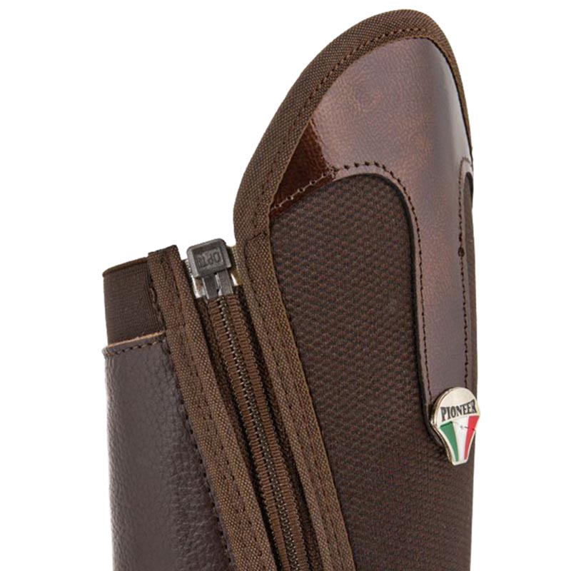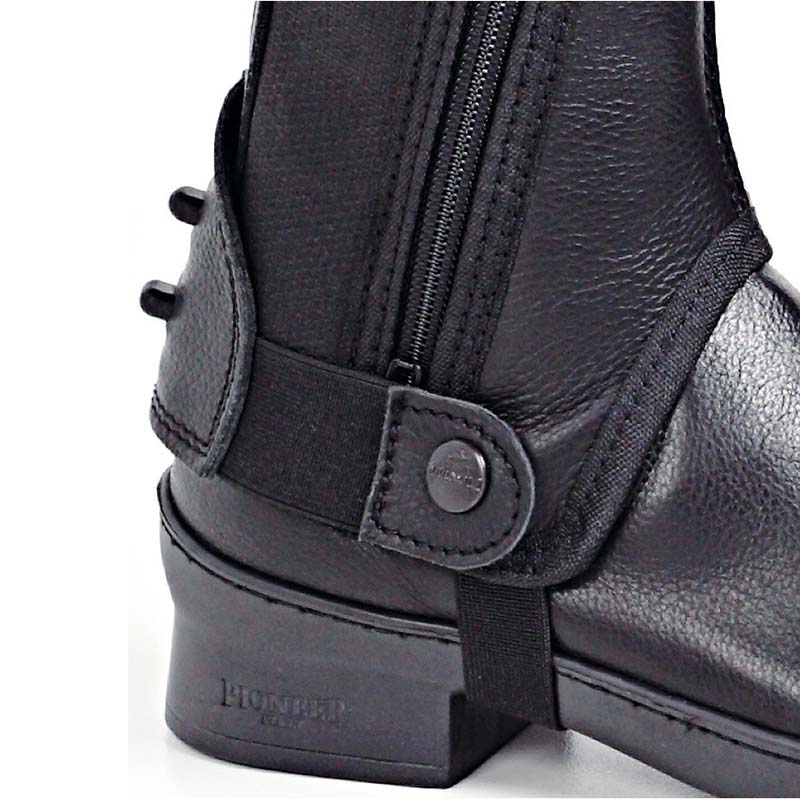 Pioneer mini chaps leather with side zip. Super elastic mini chaps in soft leather with lining. Elastic and side zipper. Stop spur in two positions. The elastic side allows an enlargement of about 1,5 cm. To choose the calf size please refer to those ones indicated on the “technical Details”. Before purchasing we recommend to ask if it is immediately available in size or color required. Times of reassortment with the company Pioneer in fact, may vary from 20 to 30 days.